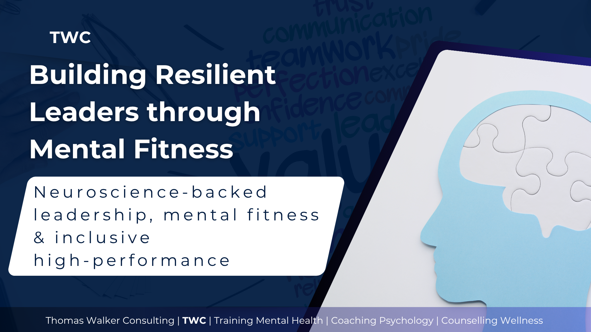 Neuroscience-backed leadership, mental fitness and inclusive high performance.OverviewLeadership resilience isn’t about endurance — it’s about regulation, recovery and connection. This Mental Fitness Playbook from Thomas Walker Consulting (TWC) translates...